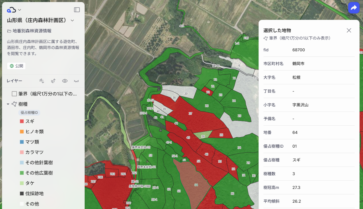 山形県庄内地域の森林資源情報を地番単位で閲覧できるようにしました