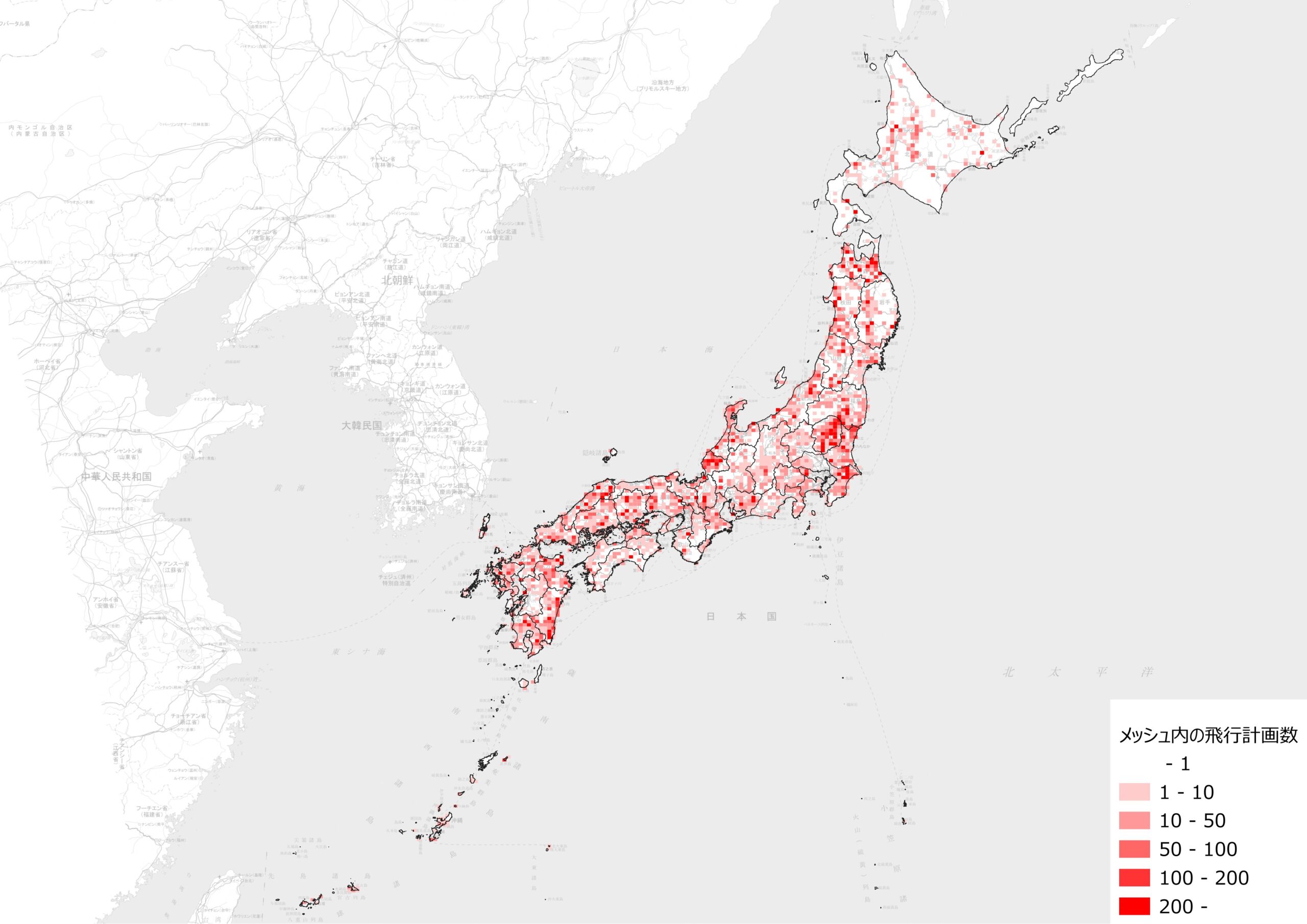 国土交通省総合政策局情報政策課が2026年4月にG空間情報センターで公開した無人航空機飛行計画データ(2025年度)の属性値を基に、森林管理の用を目的とした飛行計画件数を集計し、マッピングしてみました。