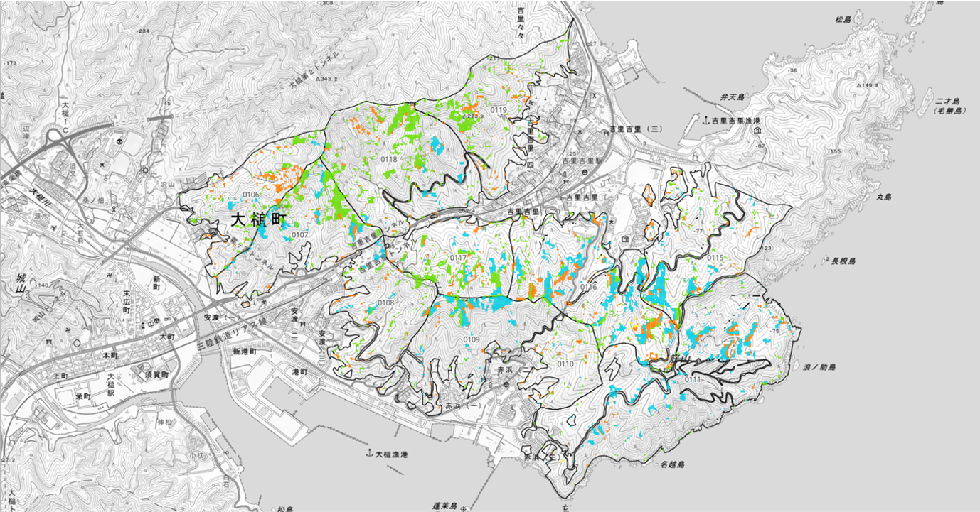 立地的な傾向としては、尾根部分に樹冠火による焼損範囲が多く、樹種割合としては、針葉樹と広葉樹が半々となっています。今回の解析範囲では、約74haの被害と推計されました。尾根部に樹冠火被害が多いのは、報道でも言われているとおり、風にあおられて、火が山を登ったということなんでしょうか。